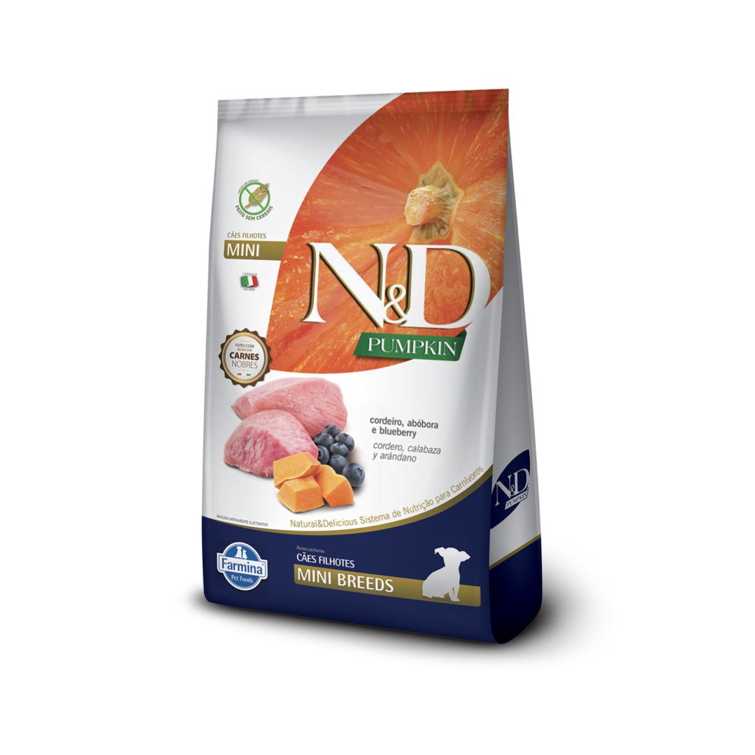 RAÇÃO FARMINA PARA CÃES FILHOTES ND CARNE FRESCA PUMPKIN CORDEIRO PUPPY MINI BREEDS
