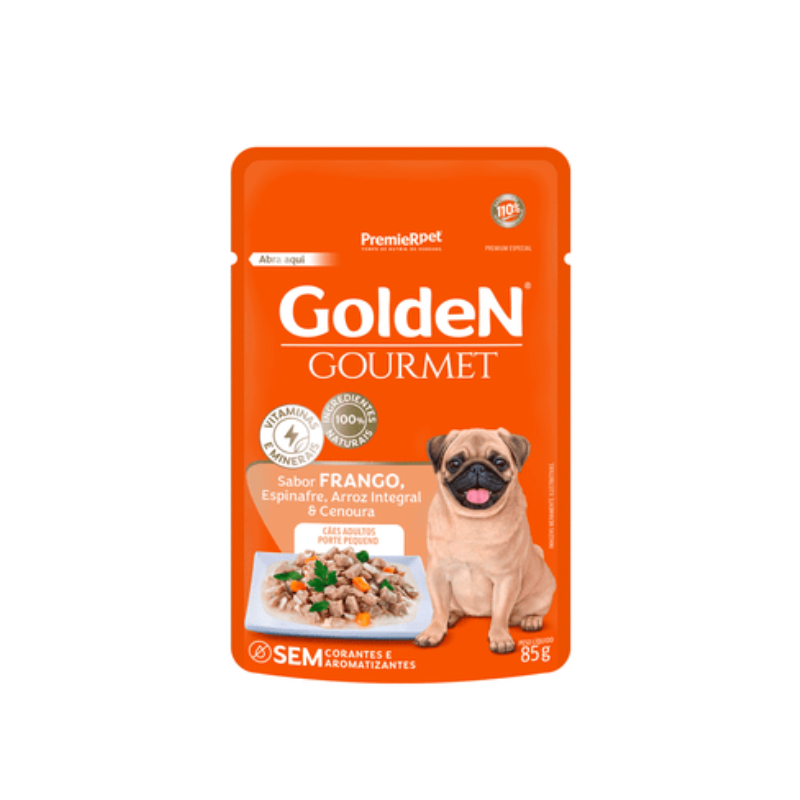 RAÇÃO ÚMIDA SACHÊ GOLDEN GOURMET CÃES ADULTO PEQUENO PORTE FRANGO 85g